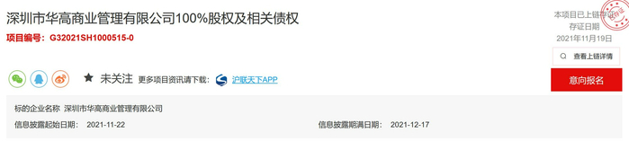 11月22日,据上海联合产权交易所消息,华侨城拟转让旗下商管公司深圳华高100%股权及相关债权,挂牌价格尚未公布。