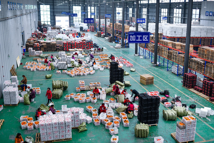丹棱橘橙目前已探索形成一条完整的农产品产业链,成功敲开三十多个省、直辖市、自治区消费市场的大门,并远销俄罗斯、东南亚等地。图为丹橙果业的采后加工仓。何浩|摄