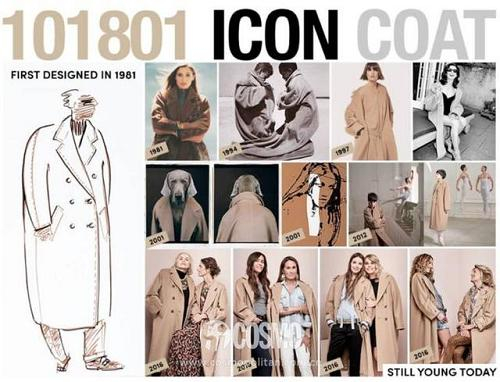 由于Max Mara会对其设计的大衣做出编号,这款由Anne Marie Beretta于1981年设计的的经典双排扣驼色大衣,就被命名为“101801大衣”。其以完美的设计、剪裁、用料、品质,以及经典款式,让Max Mara101801成为此生必备的时尚单品之一。