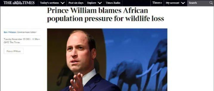 这不是威廉王子第一次发表这一论调。据媒体报道,在2017年11月,威廉王子就指责非洲的人口增长对野生动物构成威胁。威廉王子称,预计到2050年,非洲的人口将翻一番,这相当于“每月以惊人的速度增加350万人”。“毫无疑问,这给野生动物和栖息地带来了巨大压力。城市化、基础设施建设、耕作——本身都是好事,但如果我们现在不采取措施,它们就会产生可怕的影响。”