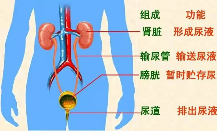 正如字面意思,是尿(小便)通过的路。尿液是由左右两个肾脏过滤血液而形成的,分别通过左右肾盂→输尿管,最终储存在膀胱中。膀胱里的尿液积累到一定程度,就会感到尿意(想小便),尿液就会从膀胱通过尿道排出体外。肾脏→肾盂→输尿管→膀胱→尿道被称为尿路。肾脏、肾盂、输尿管被称为上尿路,膀胱、尿道被称为下尿路。