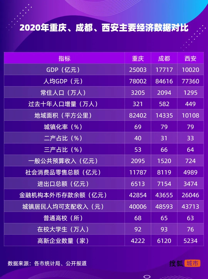 此外,中欧班列的开行、国家中心城市的获批、成渝双城经济圈等多个重大战略的叠加,给重庆和成都带来了极大的区位、交通和政策优势,有效提升了成渝的城市能级和发展速度。