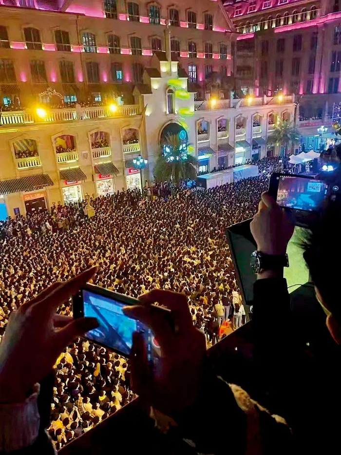但如果对比合肥之心城购物中心7层楼的集体观赛、武汉光谷步行街2000余人的派对,宿舍楼和电竞馆里的热闹便顿时显得不足挂齿了。更有甚者,在短视频和直播平台以各种令人咋舌的方式肆意宣泄着扭曲的兴奋。