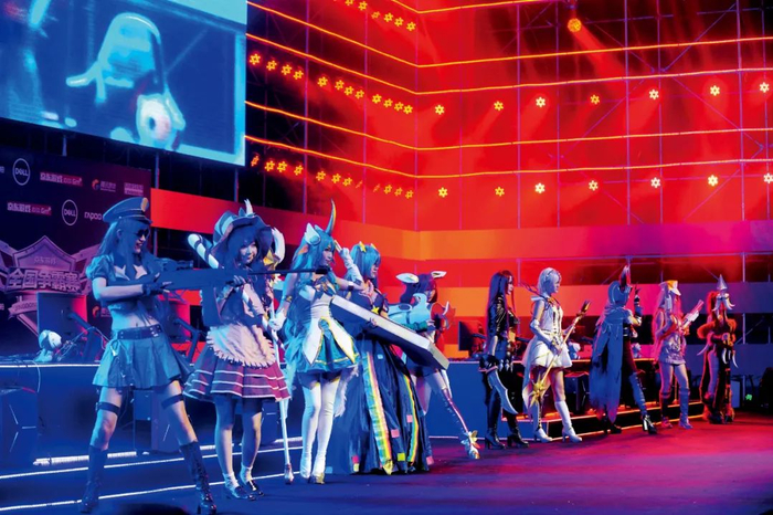 2017年10月26日,第三届京东杯英雄联盟争霸赛总决赛在武汉理工大学南湖体育馆举行,众联盟城邦的女英雄COSER亮相现场。图/视觉中国