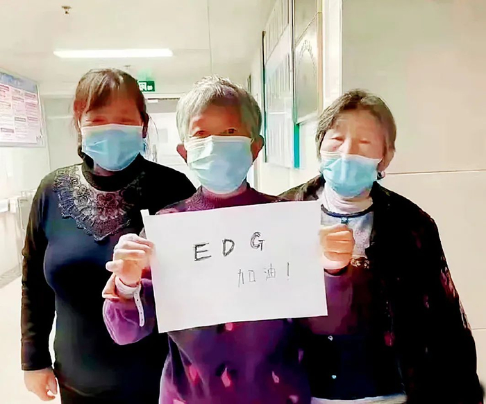 22岁的付鑫晟是北京信息科技大学的一名大四学生,当EDG在第五局比赛中将对方战队水晶摧毁的一瞬,他住的男生宿舍楼沸腾了。他向《中国新闻周刊》描述了那晚的情景:“当时已经是夜里一点了,本来应该是个挺寂静的时候,但突然整栋楼都开始尖叫,声音特别大。也有人跑出寝室,在楼道里一起欢呼。我们同一层的寝室有人拍桌子,有人拍门,奔走相告的那种感觉。顶楼一间寝室还有人在窗外打出EDG的队旗,因为北京刚好下雪了嘛,风特别大,旗子就在风里那么飘着。”