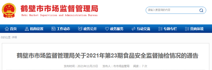 河南省鹤壁市市场监管局公示90批次食品抽检信息