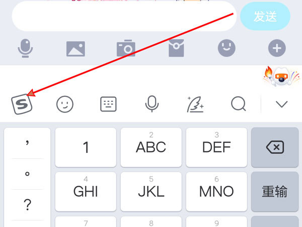 1、在打字键盘的界面中点击左上方搜索图标的按钮。