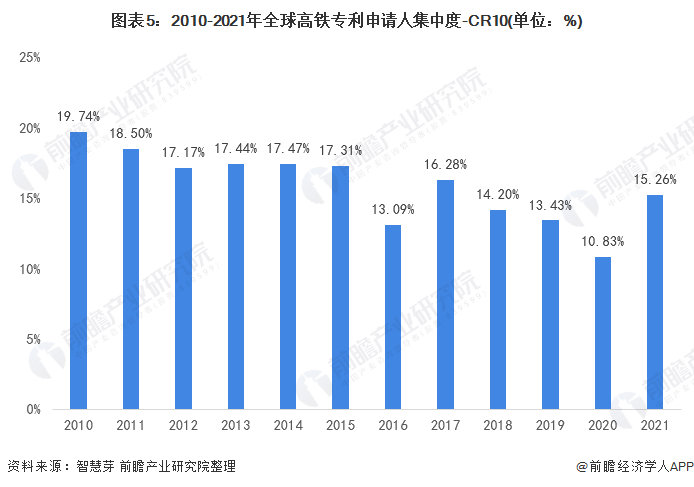 原标题:收藏!2022年全球高铁行业技术竞争格局(附区域申请分布、申请人排名、专利申请集中度等) 来源:前瞻产业研究院