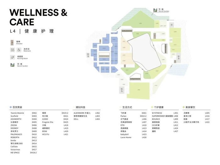 可左右滑动查看每个楼层有哪些品牌