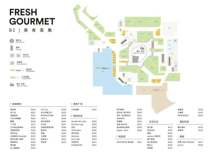 比如maki house寿司、添好运、醉东、潮界、天泰、本来川菜、咏心、奇华饼家、山崎面包、deli cake、岚山早餐公司、brownstone tapas & bar、gaga鲜语、蔡嘉法式甜品、zaku zaku、虎头局·渣打饼行、peet's coffee皮爷咖啡、baker&spice、dirtysoe、tims、double win……这些网红或知名品牌上海久光中心都有!