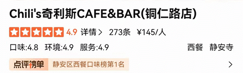 文末送大众点评静安西餐榜第一chili's