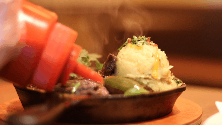 铁板让它保持微烫的温度