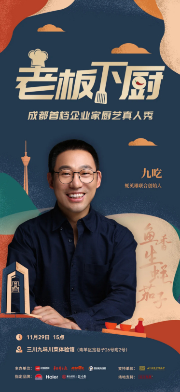 在成都,美食和生活已融为一体。为持续弘扬天府美食文化、打造享誉全球 的国际美食名片,在业内标榜和塑造更多的餐饮传承人,讲好天府美食文化故事,「老板下厨」年度策划由此诞生,活动主办方将在行业内挖掘30位企业家,通过自己的“拿手好菜”,讲述企业家背后的创业故事。