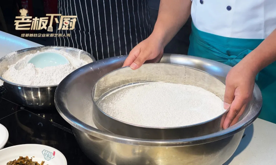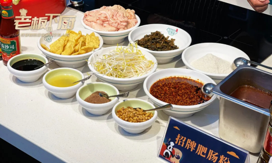 甘乐在本期「老板下厨」节目中完整展示了手打鲜粉和卤肥肠的制作过程,揭开一碗优秀且资格的“成都肥肠粉”是怎样形成的。