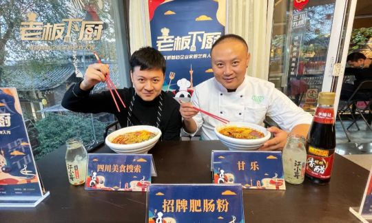 一碗“招牌肥肠粉”可见甘食记传承了成都当地名小吃的祖传手艺,又对品牌注入了专业化现代化的运作方式,非遗传承,情怀满满。“老板下厨”的初心也正是通过每一位企业家的厨艺展示让情怀更有味道。