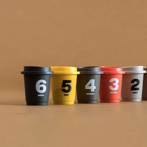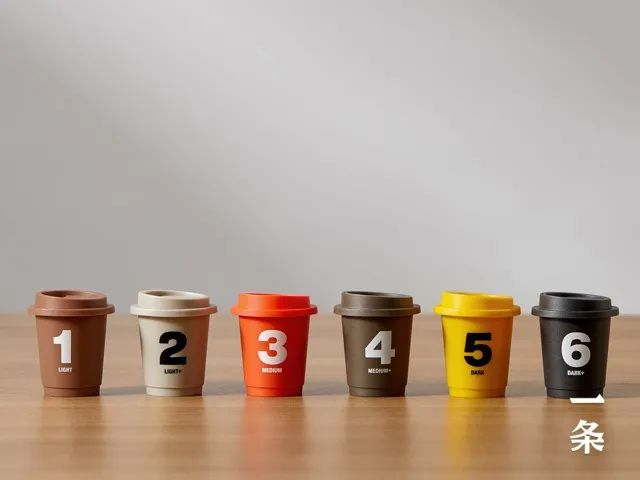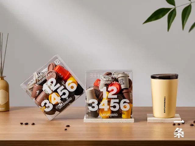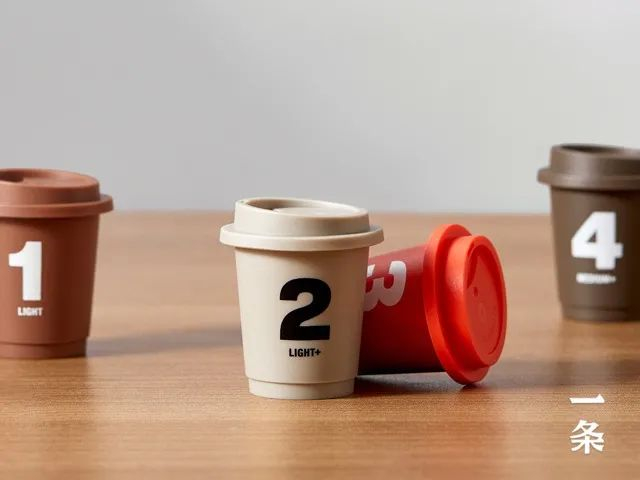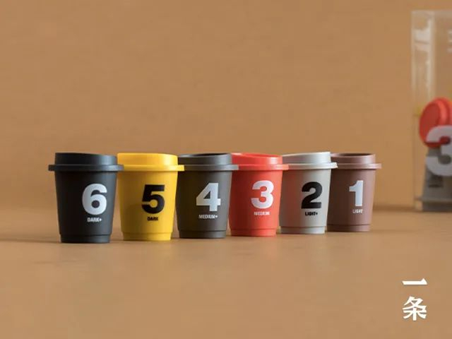 “数字系列”即溶咖啡粉有6种不同风味,分别用不同的颜色、编号来设计咖啡杯。
