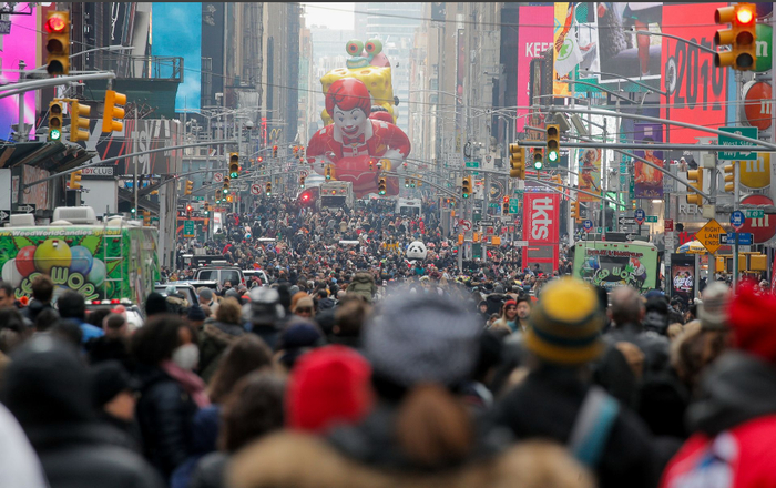 纽约的感恩节游行也是历年传统之一,在去年因疫情取消现场观看后,今年这一活动也回归了。据梅西百货媒体和公共关系负责人维拉斯表示,今年的游行活动共有6500人参与,还有数千名工作人员在幕后提供支持和保障。此次活动大约吸引了250万民众到现场观看。