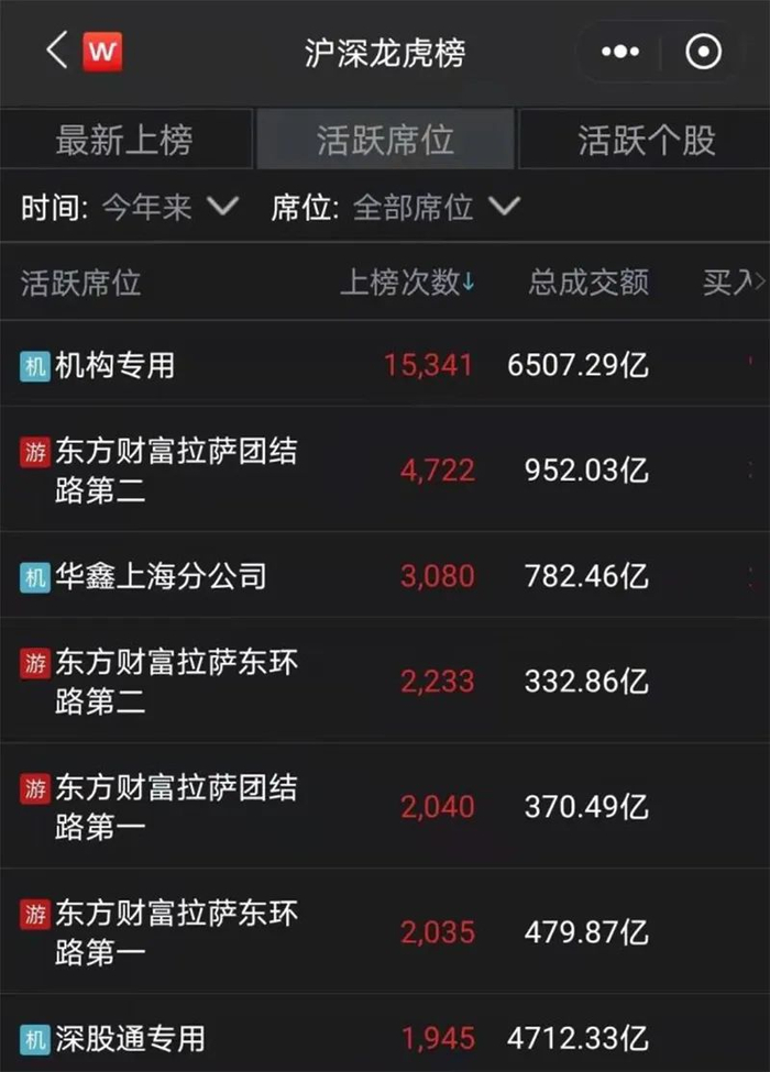而霸居榜一的华鑫证券上海分公司可谓“顶流席位”,主要服务量化私募客户。近几年,量化交易以肉眼可见的速度飞速发展。据Wind数据,华鑫证券上海是今年最活跃的交易席位之一,上榜次数达3080次,总买卖金额达782亿元。