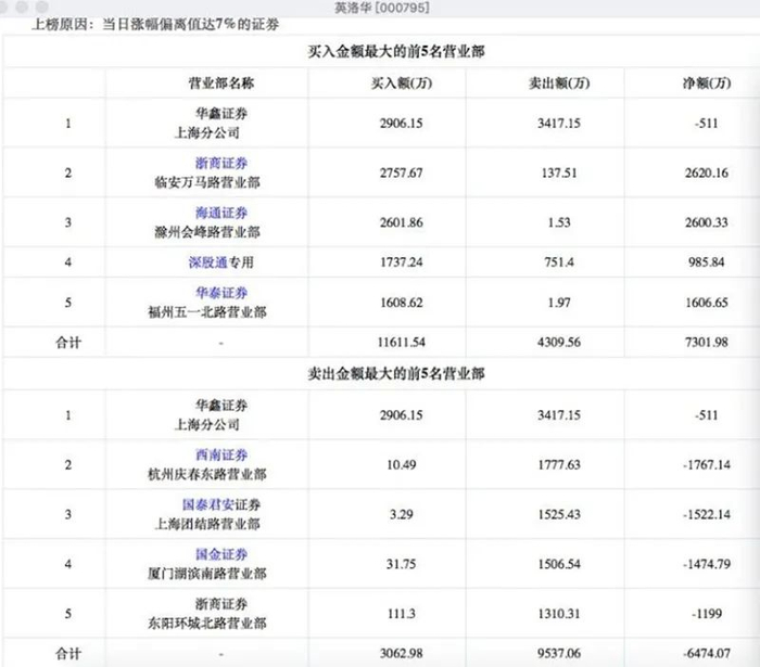 再看龙虎榜动向,在本轮上涨启动后,英洛华共计3次登上龙虎榜,占据买一席位的始终是华鑫证券上海分公司。