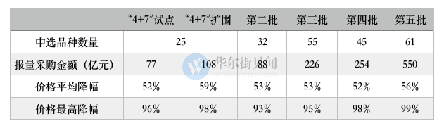 据华尔街见闻统计,自2018年底迄今,国家医保局已累计开展了五批国家药品集中带量采购(五批六轮,其中第一批25个品种分两轮集采,先于“4+7”城市试点,后扩围至全国),共覆盖218个品种,涉及市场容量达2200亿元。