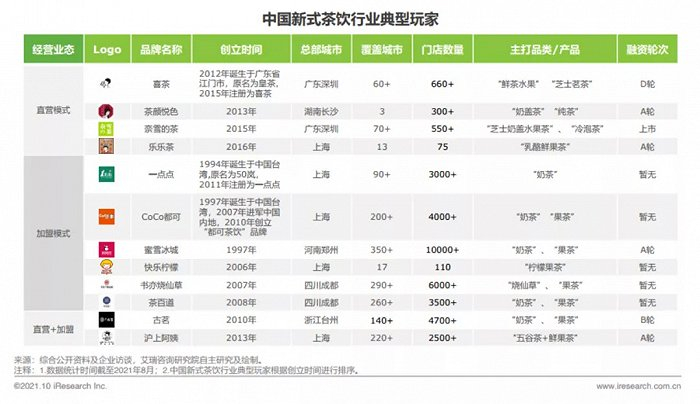 根据上个月,艾瑞咨询发布的《2021年中国新式茶饮行业研究报告》,目前全国主要连锁奶茶品牌中,书亦烧仙草的门店数已仅次于蜜雪冰城,并超过成都另一家本土奶茶品牌茶百道。