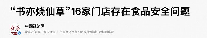 就在今年7月,媒体曝光书亦烧仙草广西南宁青秀万达店存在食品安全问题。执法人员现场检查发现,“书亦烧仙草”青秀万达店存放的食品原料中,超过标注保质期的共有13种,另有3盒草莓已腐败变质。