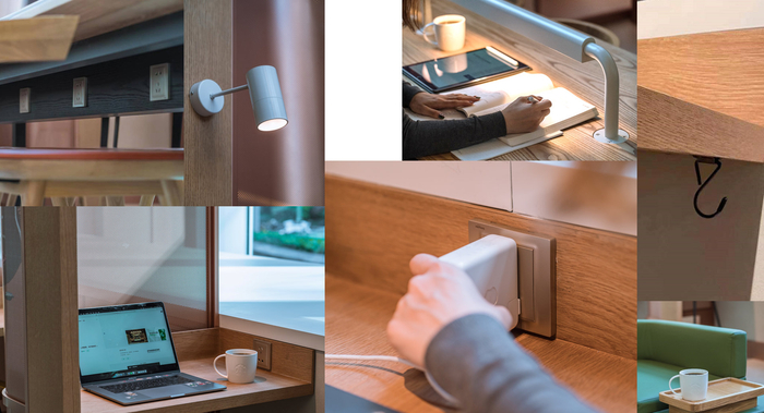 记者在现场还注意到,门店内90%以上的座位都配置了电源插座,不靠窗的桌面则配备了阅读照明灯,桌下还有小型挂钩,方便顾客挂随身携带的包袋等。