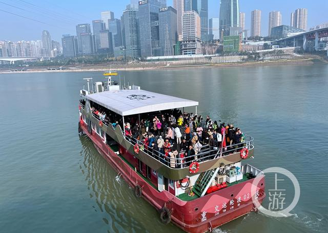 现场,不少游客打卡拍照,等待登船。“过江轮渡一直是重庆特有的交通出游工具,作为老重庆人,今天专程和朋友一起来坐洪崖洞码头开航的“头班船”,重拾当年的过江记忆。”市民邓先生说,洪崖洞目前已经是重庆的旅游名片,也很方便游客观看重庆两江美景。