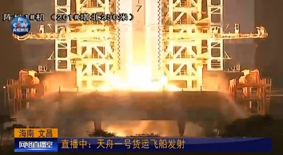 2017年4月20日19时41分,搭载天舟一号货运飞船的长征七号遥二运载火箭在中国文昌航天发射场201工位发射升空。约603秒后,飞船与火箭成功分离,进入预定轨道,发射取得圆满成功。