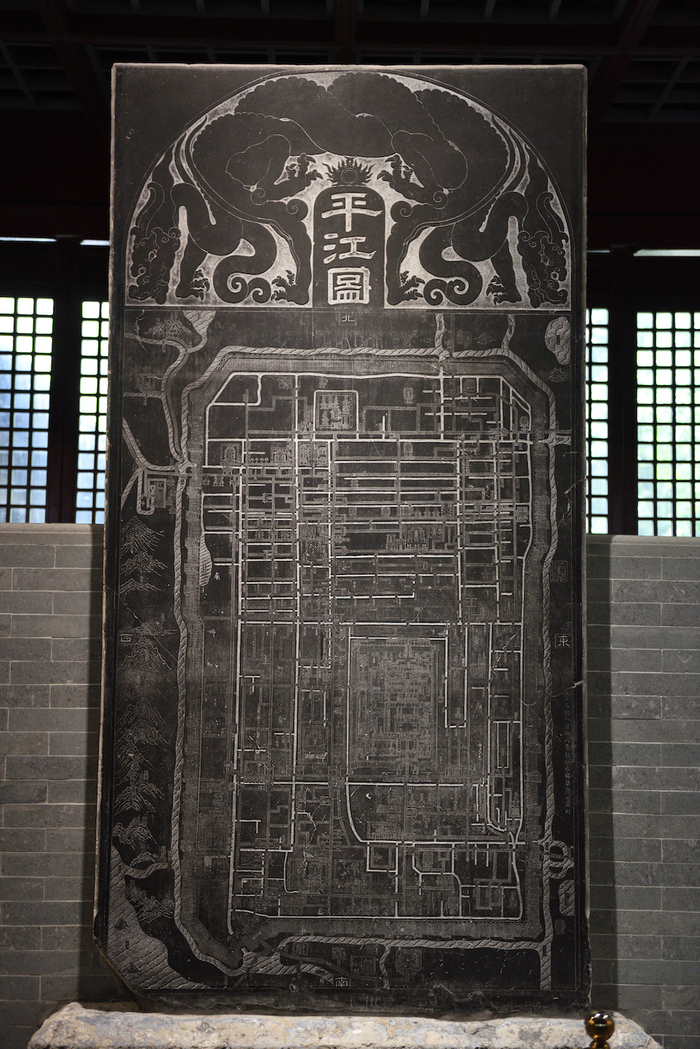 文庙内碑刻颇多,其中尤以《平江图》、《天文图》、《地理图》和《帝王绍运图》四大宋碑最为著名。刻于南宋绍定二年(1229年)的《平江图》碑高2.76米,宽1.48米,单线阴刻,精致地描绘了当时平江府城(即今苏州城)的布局状况,包括标出了总长约82公里的数十条河道和359座桥梁,是中国现存最古老、最完整的城市平面图。