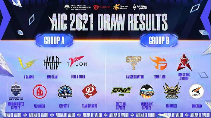 本届AIC2021小组赛将分为A、B两组,进行共42场比赛。小组赛采用单循环赛制,每组前4名可晋级至八强赛。小组赛期间将采用BO2赛制进行,其中以2-0获胜的队伍可赢得3积分;以0-2落败的队伍无法获得积分。至于以1-1平手的队伍,双方可获得各1积分。同时所有比赛将采用全局BP模式,考验所有参赛队伍的团队战术策略和角色多样性。