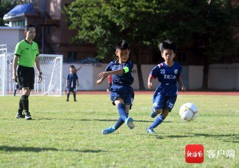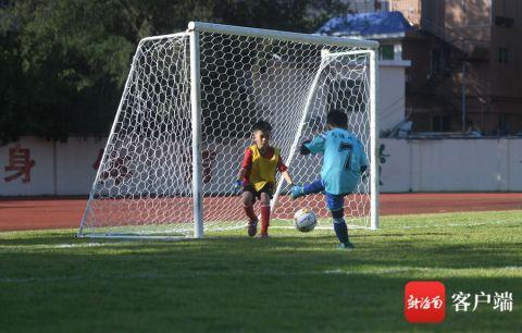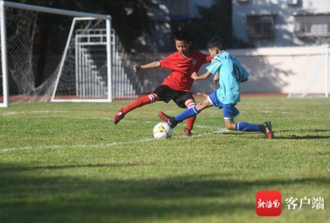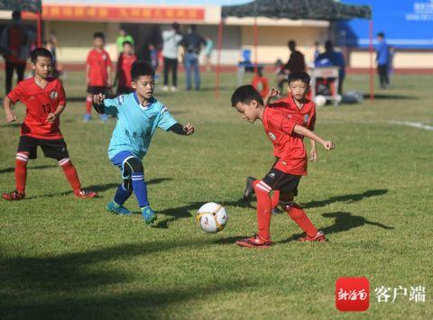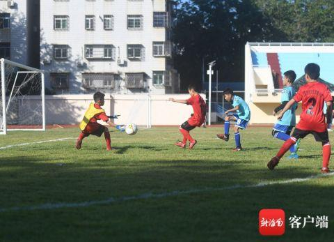 三亚足球小将在绿茵场上挥洒汗水