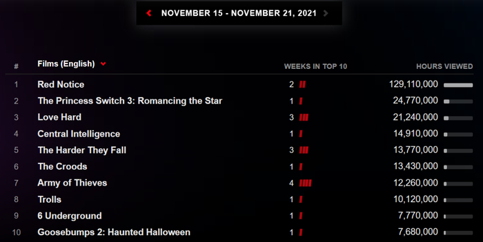 网飞此时推出官方排名网站,让其自制新电影《红色通缉令》避免了当年《鸟盒》的尴尬。