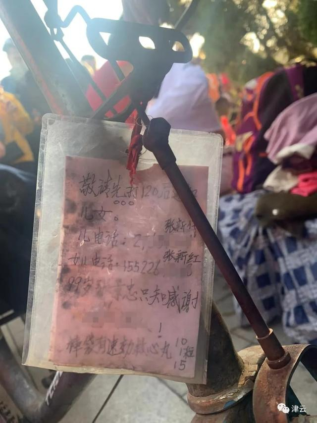 老人三轮车前的字条