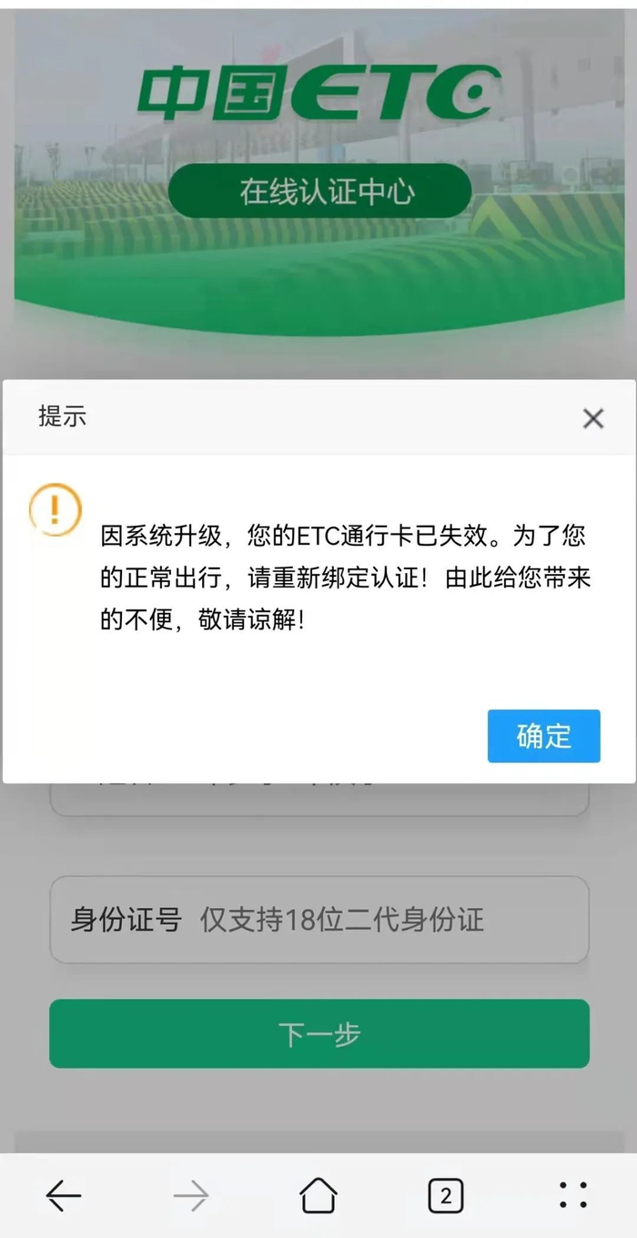 因为之前办理过网上的etc业务,刘某看完信息后没有怀疑就点击了短信附带的链接。