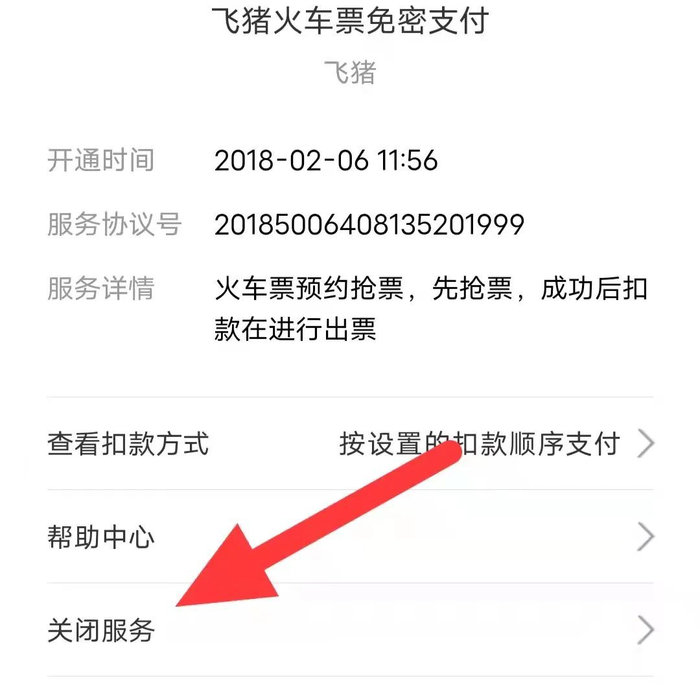 点击进入一项服务页面,点击关闭服务即可取消自动支付和扣款➘