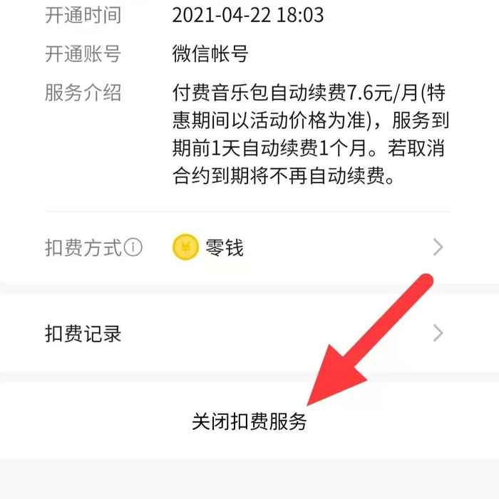 点击其中一项,即可点击“关闭扣费服务”停止自动扣费➘