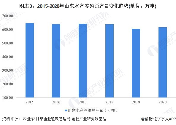 具体到水产品供给方面,目前,山东淡水养殖以螃蟹和鱼类为主,海水养殖则有鱼、虾、贝、藻及其他海生生物等。随着国内市场对水产品消费需求的增长,作为水产大省,近年来山东省水产养殖总产量保持在600万吨以上的较高水平,到2020年,全省养殖水产品总产量为615.09万吨,同比增长1.6%。