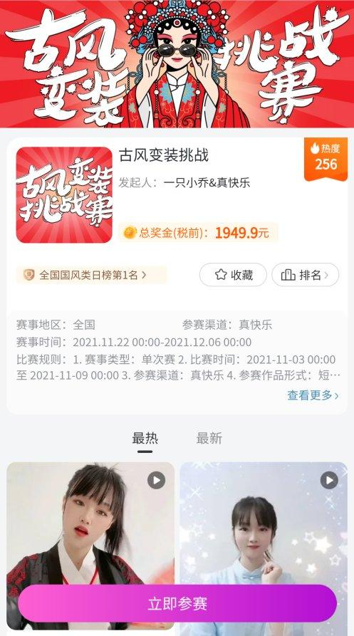 最近,“真快乐”APP赛事专区迎来开赛潮,众多趣味赛事集结。其中,一只小乔&真快乐别出心裁发起了古风变装挑战赛事,邀请全国网友一起变装锦衣华服,感受古风古韵,秀出我们骨子里的美。