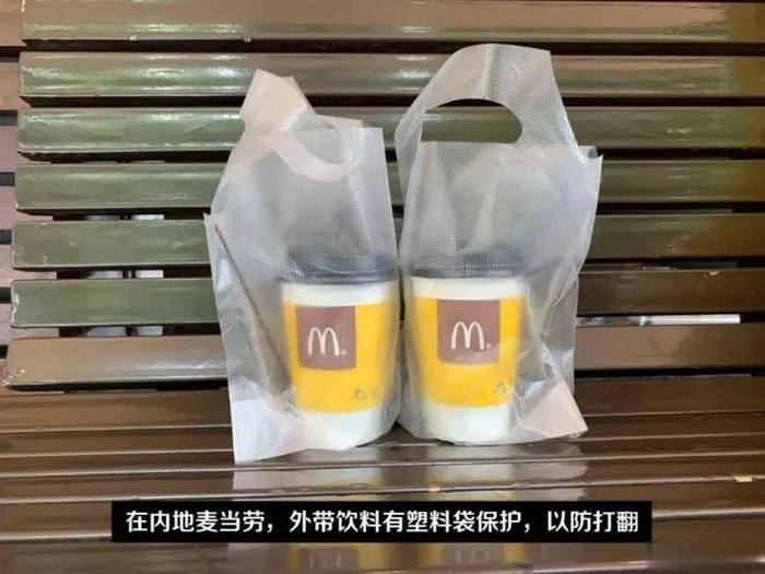 ▲改进后的麦当劳饮品袋