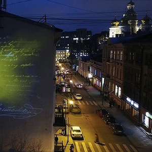 圣彼得堡,投射在建筑一侧的费奥多尔·陀思妥耶夫斯基肖像,摄于2020年11月。图片来源:Peter Kovalev/Tass