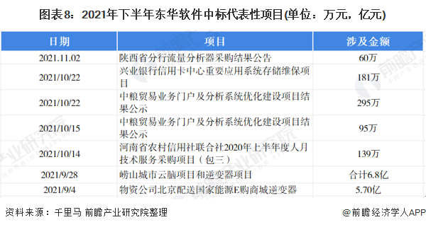 从2021年企业中标项目来看,东华软件中标涉及大额金额的项目较多,且多为东华软件和其下属子公司的打包合作,崂山城市云脑项目和逆变器项目中标金额高达6.8亿元。