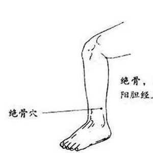 绝骨穴,在小腿外侧,外踝尖上3寸,腓骨前缘。是足少阳胆经腧穴,具有益髓壮骨、通络止痛之效。