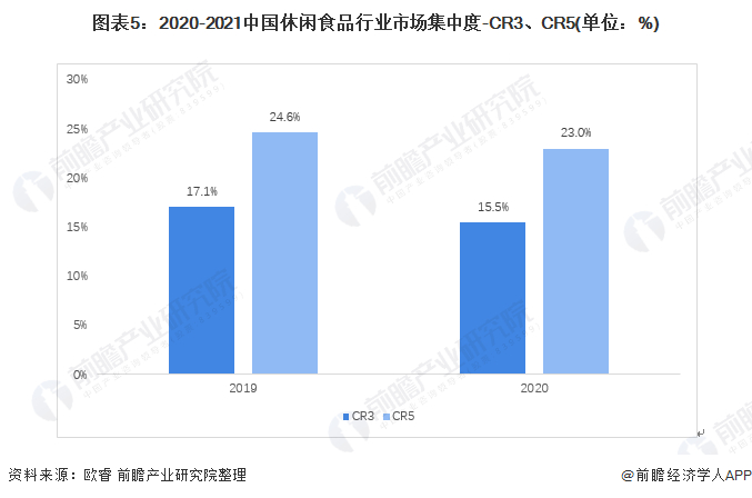 原标题:【行业深度】洞察2022:中国休闲食品行业竞争格局及市场份额(附市场集中度、企业竞争力评价等) 来源:前瞻产业研究院