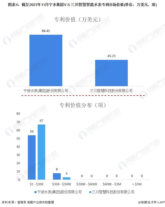 (2)专利市场价值对比:宁水集团专利市场价值略高