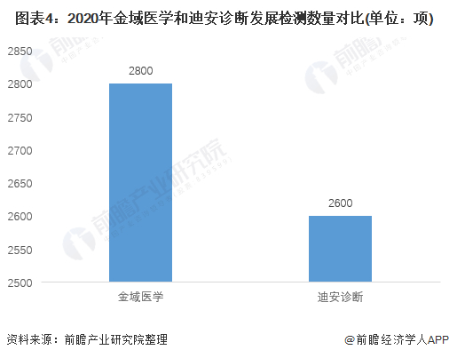 根据公司年报的披露,目前我国独立医学实验室检测种类较多,检测能力较强,其中金域医学检测项目数量较多,可达到2800项;迪安诊断可开展2600项检测项目,为超过20000家医疗机构和3亿人提供服务。