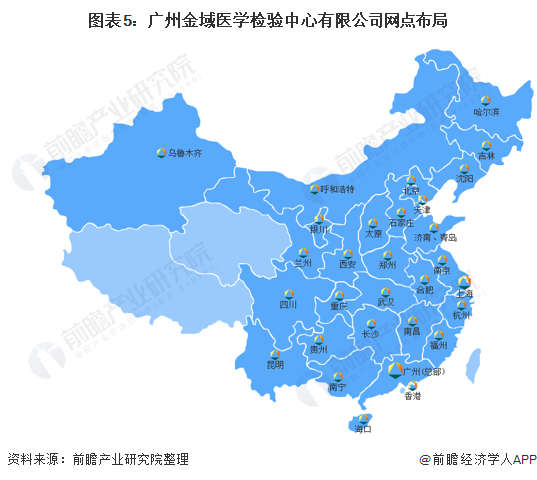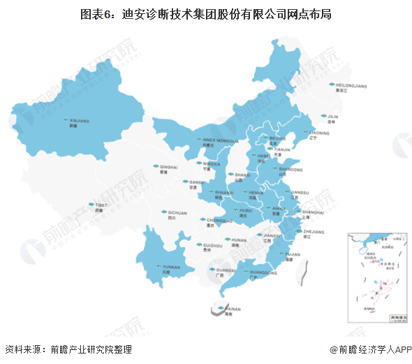 迪安诊断在全国布局43家连锁化独立医学实验室,合作网点数量超过16000家,已形成“全国覆盖、地区渗透”的“连锁化、标准化、规模化”发展态势。迪安诊断在我国华南、西南地区有较为广泛的布局。