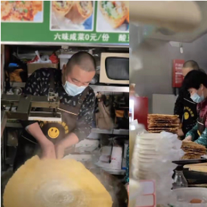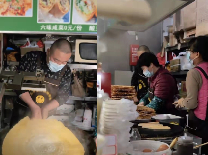 “吃了得有五六年了。之前他们开在我家楼下,现在搬到一条街以外,我还是追过来买。我们附近住户只吃他们家的煎饼。”一位来买煎饼的大爷说道。