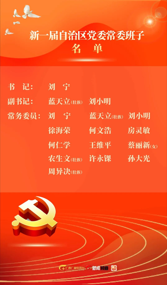 刘宁当选广西壮族自治区党委书记,蓝天立、刘小明当选副书记