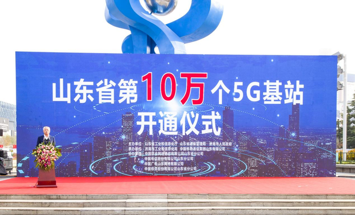 11月28日,山东省在济南泉城广场举办第10万个5G基站开通仪式。仪式以“5G赋能 智领未来”为主题。周乃翔省长通过5G视频连线济南市章丘区的共建共享站点,下达开通指令,山东铁塔工作人员合闸送电,移动、联通、电信、广电四家5G信号同时开通。